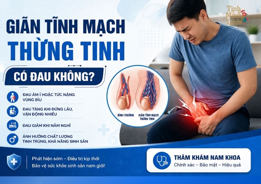 Giãn tĩnh mạch thừng tinh là căn bệnh thầm lặng nhưng lại là "thủ phạm" hàng đầu gây ra hơn 40% các ca vô sinh nam. Một trong những câu hỏi phổ biến nhất mà các quý ông đặt ra khi tìm kiếm về căn bệnh này chính là: "Giãn tĩnh mạch thừng tinh có đau không?". Bài viết dưới đây sẽ giải đáp chi tiết về cảm giác đau do bệnh lý này gây ra, cách nhận biết và phương pháp hỗ trợ điều trị an toàn, hiệu quả nhất hiện nay.